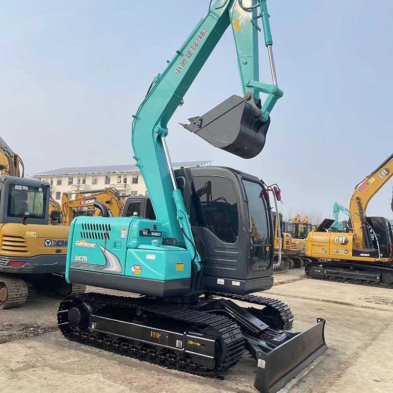 The Kobelco SK75 is a compact kobelco mini excavator, ideal for urban landscaping and small construction. Weighing 6850kg, it balances agility with reliable performance.