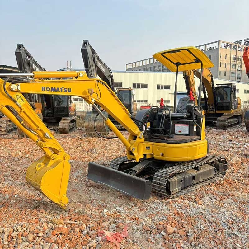 The Komatsu PC30MR-3 is a compact star among mini used excavator models, built for tight spots. Weighing 3,080kg, it’s agile yet sturdy.